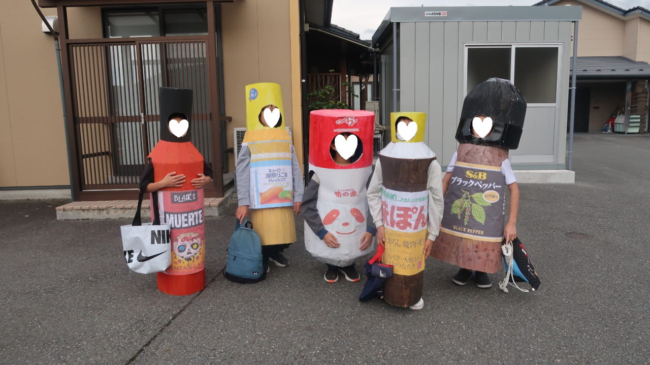 学童職員の協力のもと、今年の仮装はなんと・・・調味料!!