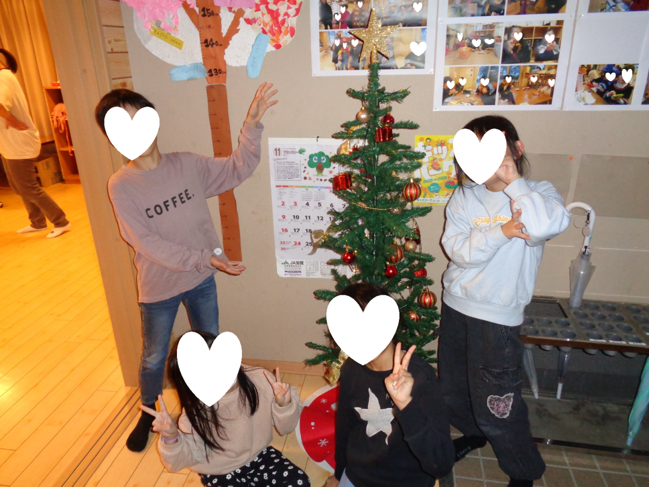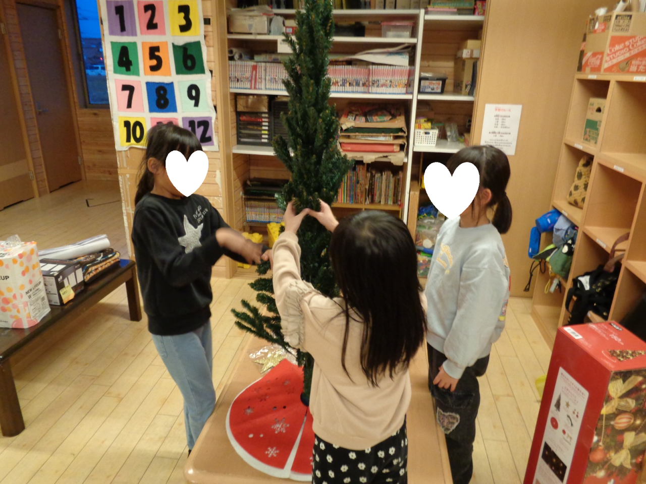 希望者でクリスマス会にむけて、ツリーの飾りつけをしました。