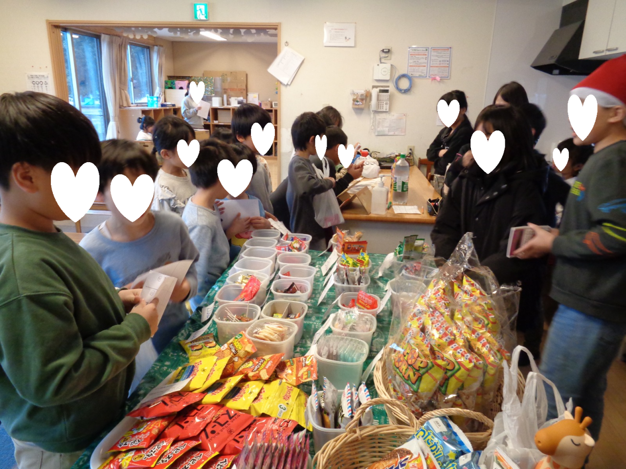 クリスマス会当日は、射的屋さん・千本引き屋さん・くじ引き屋さん・駄菓子屋さんが出店しました。