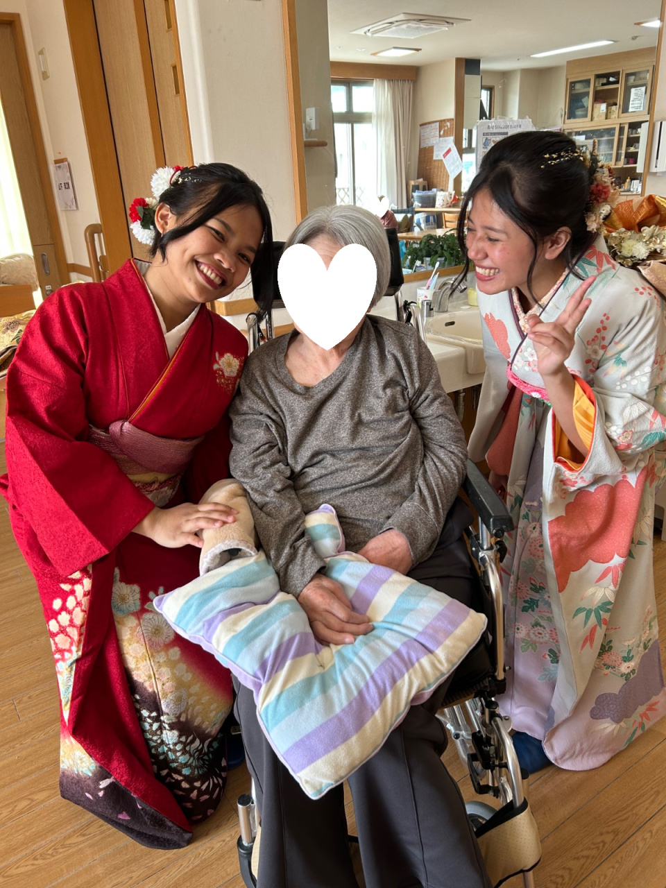 利用者様にやさしく寄り添いながら毎日頑張る2人にとって日本で迎える成人は特別な節目となりました。