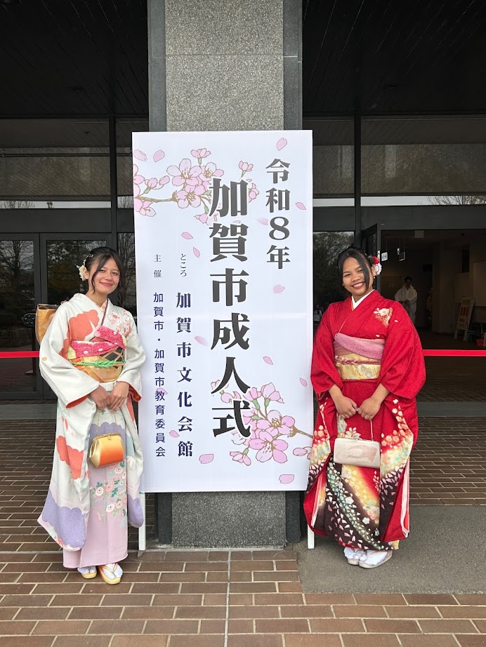4/5(日)に当施設に勤務している外国人スタッフ2名が加賀市の成人式に参加してきました。