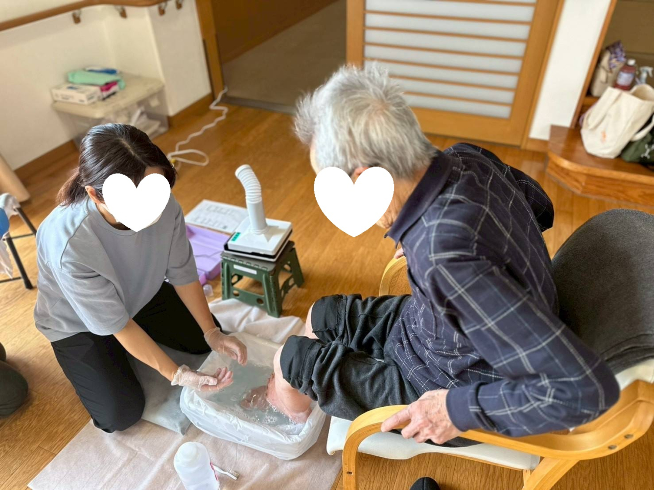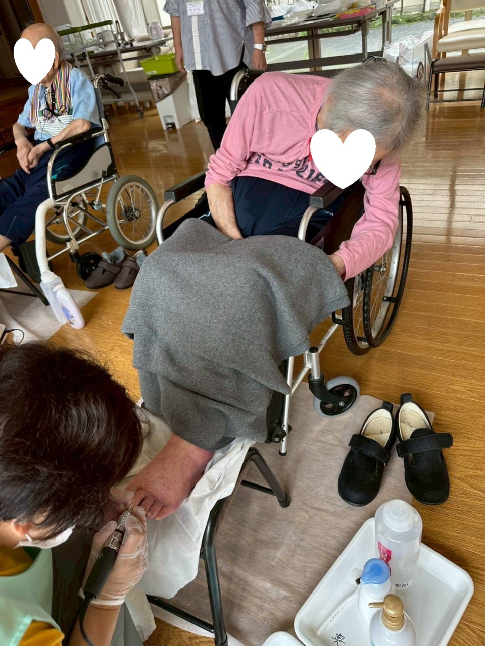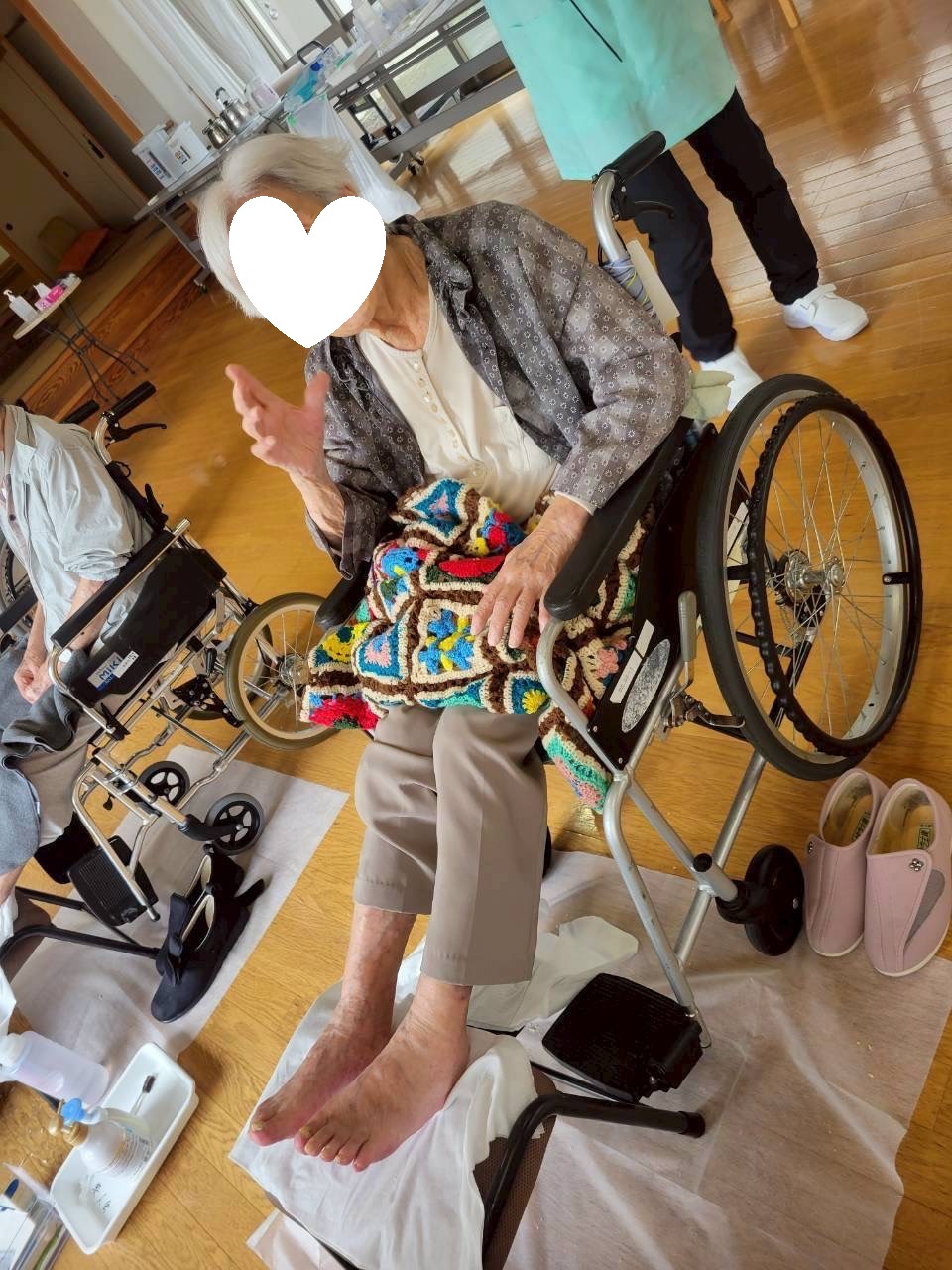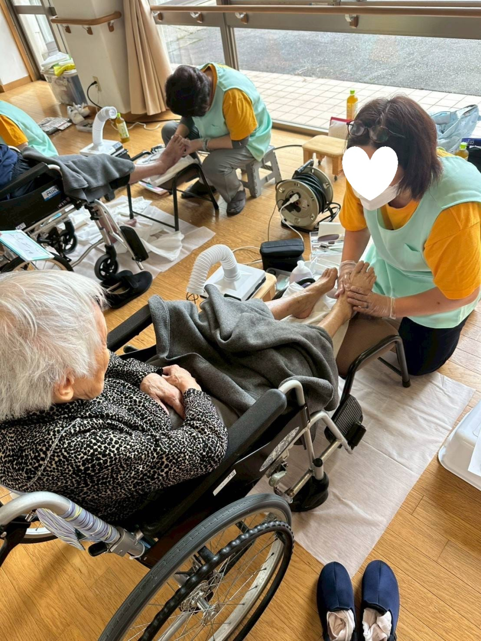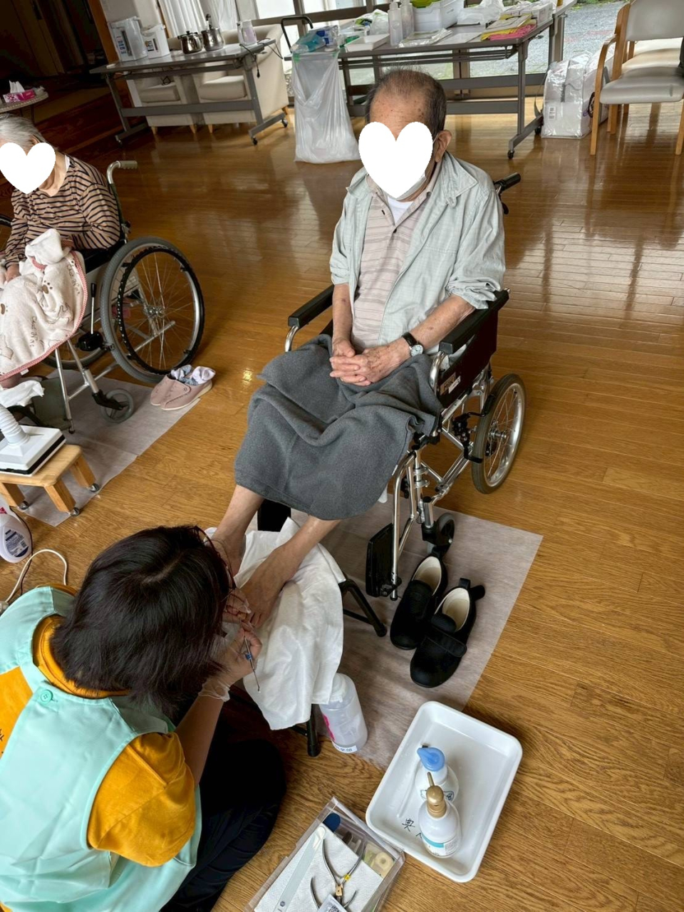 足湯や爪切りまで丁寧にケアしていただき、利用者の皆さんもとても気持ちよさそう!