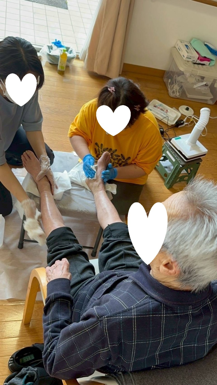 「足が軽くなったよ~」「ぽかぽかしてきた」と笑顔が広がり、中には心地よくてうとうと眠ってしまう方も・・